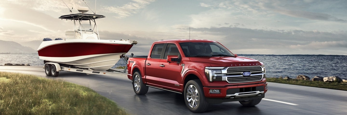 *When Properly equipped. Max towing of 13,500 lbs. available on F-150® SuperCrew 6.5’ box 4x4 with available 3.5L V6 engine. Class is Full-Size Pickups under 8,500 lbs. GVWR. When properly equipped. Max towing varies and is based on accessories and vehicle configuration. See label on doorjamb for carrying capacity of a specific vehicle.