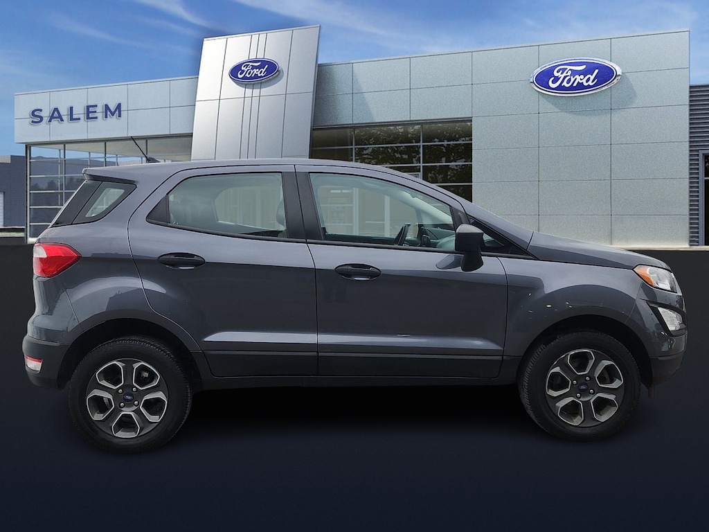 "Priced below KBB Fair Purchase Price!*ONE OWNER* *CLEAN HISTORY REPORT* ***PLEASE CALL 603-898-9766***.*****At Salem Ford you win!***** ****PLEASE CALL 603-898-9766****We make the car buying process very simple by displaying the lowest price on the window. We price our vehicles more aggressively than anyone else in the area. For that reason we're proud to display it on every vehicle's window.We believe there is more to buying a vehicle than worrying about the price. For that reason Key Auto has simplified that process for our customers. When we price a vehicle we take the following into consideration: 1) market conditions 2) what the area dealers are selling them for 3) Kelly Blue Book* retail. This way when you leave a Key Auto Dealership you're confident you've received the absolute best deal.CARFAX One-Owner. Clean CARFAX.Certified. Ford Gold Certified Details: * Powertrain Limited Warranty: 84 Month/100000 Mile (whichever comes first) from original in-service date * Transferable Warranty * and 22000 FordPass Rewards Points to use toward first two maintenance visits * Warranty Deductible: $100 * 172 Point Inspection * Roadside Assistance * Limited Warranty: 12 Month/12000 Mile (whichever comes first) after new car warranty expires or from certified purchase date * Vehicle History2021 Ford EcoSport S 4D Sport Utility Smoke Metallic S 4WD 6-Speed AutomaticSalem Ford is proud to present you with another True Market Priced Pre-Owned Vehicle. This 2021 Ford EcoSport S Ford Gold Certified is loaded with the following Factory Options: Equipment Group 100A Ford Gold Certified Certified 4-Wheel Disc Brakes 6 Speakers ABS brakes Air Conditioning AM/FM radio Brake assist Bumpers: body-color Cloth Front Bucket Seats Compass Delay-off headlights Driver door bin Driver vanity mirror Dual front impact airbags Dual front side impact airbags Electronic Stability Control Emergency communication system Exterior Parking Camera Rear Front anti-roll bar Front Bucket Seats Front Center Armrest Front reading lights Front wheel independent suspension Fully automatic headlights Illuminated entry Knee airbag Low tire pressure warning Occupant sensing airbag Outside temperature display Overhead airbag Overhead console Panic alarm Passenger door bin Passenger vanity mirror Power door mirrors Power steering Power windows Radio data system Radio: AM/FM/MP3 Stereo Rear anti-roll bar Rear seat center armrest Rear side impact airbag Rear window defroster Rear window wiper Remote keyless entry Speed control Speed-sensing steering Split folding rear seat Steering wheel mounted audio controls SYNC Communications & Entertainment System Tachometer Telescoping steering wheel Tilt steering wheel Traction control Trip computer Variably intermittent wipers and Wheels: 16""Low-Gloss Magnetic-Painted!!2.0L I4 Ti-VCT GDI"