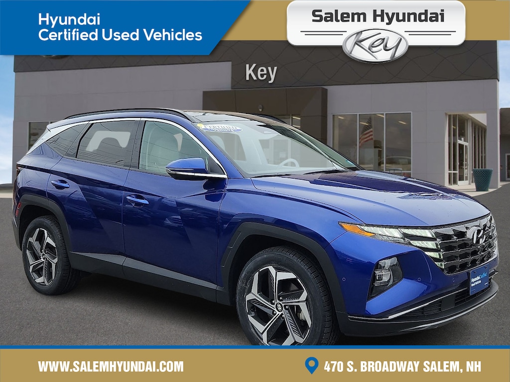 "2024 Hyundai Tucson Limited LimitedNEW TIRES 1-Owner Clean CarFax Hyundai Certified Pre Owned AWD Apple CarPlay & Android Auto Power Liftgate Power moonroof. This Tucson Limited is nicely equipped with Option Group 01 Hyundai Certified Used Vehicles Certified AWD Apple CarPlay & Android Auto Power Liftgate Power moonroof 4-Wheel Disc Brakes 8 Speakers ABS brakes Air Conditioning AM/FM radio: SiriusXM Auto High-beam Headlights Auto-dimming Rear-View mirror Automatic temperature control Brake assist Bumpers: body-color Delay-off headlights Driver door bin Driver vanity mirror Dual front impact airbags Dual front side impact airbags Electronic Stability Control Emergency communication system: Blue Link Connected Car Service (3-year complimentary subscription) Exterior Parking Camera Rear Four wheel independent suspension Front anti-roll bar Front Bucket Seats Front Center Armrest Front dual zone A/C Front reading lights Fully automatic headlights Garage door transmitter: HomeLink Heated & Ventilated Front Bucket Seats Heated door mirrors Heated front seats Heated rear seats Heated steering wheel Illuminated entry Leather Seat Trim Low tire pressure warning Memory seat Navigation System Occupant sensing airbag Outside temperature display Overhead airbag Overhead console Panic alarm Passenger door bin Passenger vanity mirror Power door mirrors Power driver seat Power passenger seat Power steering Power windows Radio data system Radio: Bose Premium w/AM/FM/HD Audio System Rain sensing wipers Rear anti-roll bar Rear reading lights Rear seat center armrest Rear side impact airbag Rear window defroster Rear window wiper Remote keyless entry Roof rack: rails only Security system Speed control Split folding rear seat Spoiler Steering wheel mounted audio controls Tachometer Telescoping steering wheel Tilt steering wheel Traction control Trip computer Turn signal indicator mirrors Variably intermittent wipers Ventilated front seats and Wheels: 19""x 7.5J""Machine-Face Finish Alloy.Hyundai Certified Used Vehicles Details: * Powertrain Limited Warranty: 120 Month/100000 Mile (whichever comes first) from original in-service date * Vehicle History * Roadside Assistance * Includes 10-year/Unlimited Mileage Roadside Assistance with Rental Car and Trip Interruption Reimbursement; Please See Dealers for Specific Vehicle Eligibility Requirements. 10-Year/100000 Mile Hybrid/EV Battery Warranty. 3-Months SiriusXM Trial Subscription. Complimentary 1 Year (Connected Care & Remote Pkgs). * 173+ Point Inspection * Limited Warranty: 60 Month/60000 Mile (whichever comes first) from original in-service date * Warranty Deductible: $50Call 603-841-3099 to schedule your contact free test drive today!"