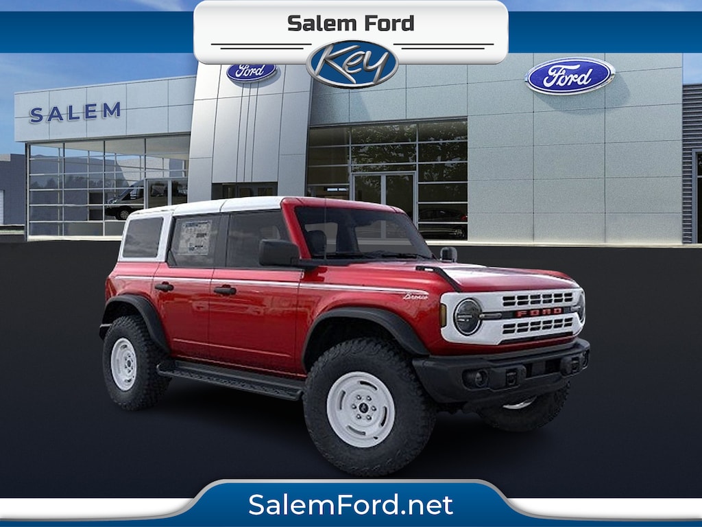 "Recent Arrival! 2025 Ford Bronco Heritage Edition Ruby Red Metallic Tinted Clearcoat ***PLEASE CALL 603-898-9766***.*****At Salem Ford you win!***** ****PLEASE CALL 603-898-9766****We make the car buying process very simple by displaying the lowest price on the window. We price our vehicles more aggressively than anyone else in the area. For that reason we're proud to display it on every vehicle's window.We believe there is more to buying a vehicle than worrying about the price. For that reason Key Auto has simplified that process for our customers. When we price a vehicle we take the following into consideration: 1) market conditions 2) what the area dealers are selling them for 3) Kelly Blue Book* retail. This way when you leave a Key Auto Dealership you're confident you've received the absolute best deal.Salem Ford is proud to present you with another True Market Priced Vehicle. This 2025 Ford Bronco Heritage Edition is loaded with the following Factory Options: Equipment Group 662A Mid Package 4-Wheel Disc Brakes 7 Speakers ABS brakes Air Conditioning Alloy wheels AM/FM radio: SiriusXM with 360L AM/FM Stereo Auto High-beam Headlights Auto-dimming Rear-View mirror Automatic temperature control Brake assist Compass Connected Navigation Convertible HardTop Convertible roof lining Delay-off headlights Driver door bin Driver vanity mirror Dual front impact airbags Dual front side impact airbags Electronic Stability Control Emergency communication system: 911 Assist Exterior Parking Camera Rear Front anti-roll bar Front Bucket Seats Front Center Armrest Front dual zone A/C Front fog lights Front License Plate Bracket Front reading lights Front wheel independent suspension Fully automatic headlights Glass rear window Heated door mirrors Heated leather seats Heated steering wheel Illuminated entry Integrated roll-over protection Leather Shift Knob Low tire pressure warning Navigation system: Connected Navigation Occupant sensing airbag Outside temperature display Overhead airbag Overhead console Panic alarm Passenger door bin Passenger vanity mirror Plaid Cloth Front Heated Bucket Seats Power door mirrors Power steering Power windows Radio data system Rear window defroster Rear window wiper Remote keyless entry Security system SiriusXM w/360L Speed control Split folding rear seat Steering wheel mounted audio controls SYNC 4 Tachometer Telescoping steering wheel Tilt steering wheel Traction control Trip computer Variably intermittent wipers and Wheels: 17""Unique White!! Price includes conditional rebates. $1500 - Bonus Customer Cash. Exp. 01/05/2026"