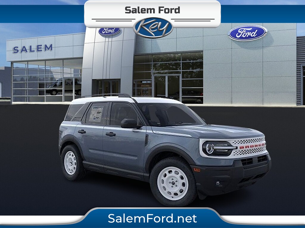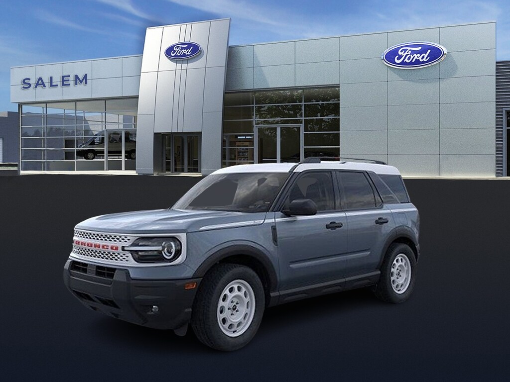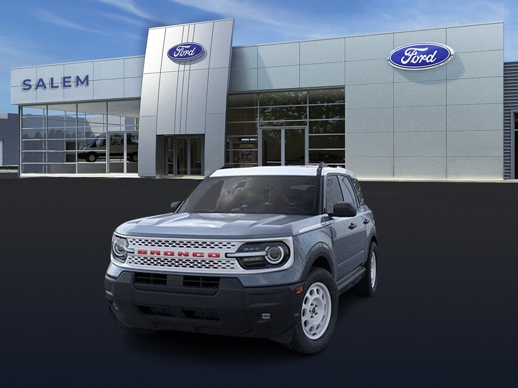 "Recent Arrival! 2025 Ford Bronco Sport Heritage Azure Gray Metallic Tri-Coat ***PLEASE CALL 603-898-9766***.This Bronco Sport Heritage is nicely equipped with Convenience Package (Front Driver/Passenger Seat Back Map Pockets Heated 8-Way Power Driver's Seat LED Fog Lamps Premium Wrapped Steering Wheel and Universal Garage Door Opener (UGDO)) Equipment Group 250A 4-Wheel Disc Brakes 6 Speakers ABS brakes Air Conditioning Alloy wheels AM/FM radio: SiriusXM AM/FM Stereo Auto High-beam Headlights Automatic temperature control Brake assist Compass Delay-off headlights Driver door bin Driver vanity mirror Dual front impact airbags Dual front side impact airbags Electronic Stability Control Emergency communication system: SYNC 4 911 Assist Four wheel independent suspension Front & Rear Floor Liners w/o Carpet Mats Front anti-roll bar Front Bucket Seats Front Center Armrest Front License Plate Bracket Front reading lights Fully automatic headlights Heated door mirrors Illuminated entry Knee airbag Low tire pressure warning Occupant sensing airbag Outside temperature display Overhead airbag Overhead console Panic alarm Passenger door bin Passenger vanity mirror Plaid Cloth Front Bucket Seats Power door mirrors Power Moonroof Power steering Power windows Radio data system Rear anti-roll bar Rear Parking Sensors Rear reading lights Rear seat center armrest Rear window defroster Rear window wiper Remote keyless entry Security system SiriusXM Speed control Speed-sensing steering Speed-Sensitive Wipers Split folding rear seat Steering wheel mounted audio controls SYNC 4 w/Enhanced Voice Recognition Tachometer Telescoping steering wheel Tilt steering wheel Traction control Trip computer Variably intermittent wipers and Wheels: 17""Oxford White-Painted Aluminum.*$500 Finance Assist/ $500 Trade Assist details below. *Trade-in must be a 2014 or newer with 80k miles or less to qualify for $500 Trade Assist dealer incentive *Minimum finance amount is $10000 to qualify for $500 Finance Assist dealer incentive. Price includes conditional rebates. $500 - Bonus Customer Cash. Exp. 01/05/2026 $500 - Retail Bonus Cash. Exp. 01/05/2026"
