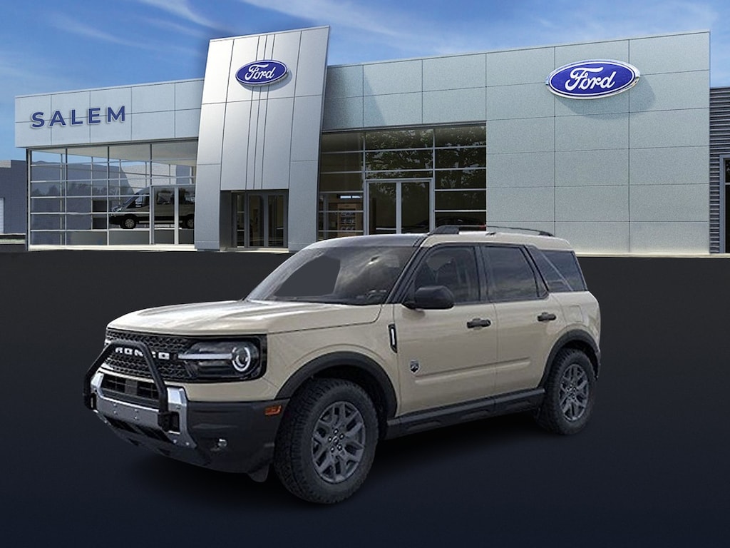 "2025 Ford Bronco Sport Big Bend Desert Sand ***PLEASE CALL 603-898-9766***.*****At Salem Ford you win!***** ****PLEASE CALL 603-898-9766****We make the car buying process very simple by displaying the lowest price on the window. We price our vehicles more aggressively than anyone else in the area. For that reason we're proud to display it on every vehicle's window.We believe there is more to buying a vehicle than worrying about the price. For that reason Key Auto has simplified that process for our customers. When we price a vehicle we take the following into consideration: 1) market conditions 2) what the area dealers are selling them for 3) Kelly Blue Book* retail. This way when you leave a Key Auto Dealership you're confident you've received the absolute best deal.Salem Ford is proud to present you with another True Market Priced Vehicle. This 2025 Ford Bronco Sport Big Bend is loaded with the following Factory Options: Black Diamond Off-Road Package (110V/400W AC Power Outlet 2nd Row Carpeted Seatback Auxiliary Switches & Wiring Brush Guard Cargo Management System (Shelf/Divider/Table) Cargo Mat Class II Trailer Tow Pack w/Trailer Sway Control Fender Tie Downs Front & Rear Black Bumpers Interior Grab Handle Recovery Hooks and Wheels: 17""Carbonized Gray Painted Aluminum) Convenience Package (Front Driver/Passenger Seat Back Map Pockets Heated 8-Way Power Driver's Seat LED Fog Lamps Premium Wrapped Steering Wheel and Universal Garage Door Opener (UGDO)) Equipment Group 200A 4-Wheel Disc Brakes 6 Speakers ABS brakes Air Conditioning Alloy wheels AM/FM radio: SiriusXM AM/FM Stereo Auto High-beam Headlights Automatic temperature control Brake assist Cloth w/Easy-to-Clean Front Bucket Seats Compass Delay-off headlights Driver door bin Driver vanity mirror Dual front impact airbags Dual front side impact airbags Electronic Stability Control Emergency communication system: SYNC 4 911 Assist Four wheel independent suspension Front & Rear Floor Liners w/o Carpet Mats Front anti-roll bar Front Bucket Seats Front Center Armrest Front License Plate Bracket Front reading lights Fully automatic headlights Heated door mirrors Illuminated entry Knee airbag Low tire pressure warning Occupant sensing airbag Outside temperature display Overhead airbag Overhead console Panic alarm Passenger door bin Passenger vanity mirror Power door mirrors Power Moonroof Power steering Power windows Radio data system Rear anti-roll bar Rear Parking Sensors Rear reading lights Rear seat center armrest Rear window defroster Rear window wiper Remote keyless entry Security system SiriusXM Speed control Speed-sensing steering Speed-Sensitive Wipers Split folding rear seat Steering wheel mounted audio controls SYNC 4 w/Enhanced Voice Recognition Tachometer Telescoping steering wheel Tilt steering wheel Traction control Trip computer Variably intermittent wipers and Wheels: 17""Carbonized Gray-Painted Aluminum!! Price includes conditional rebates. $1000 - Retail Bonus Cash. Exp. 01/05/2026 $500 - Bonus Customer Cash. Exp. 01/05/2026"