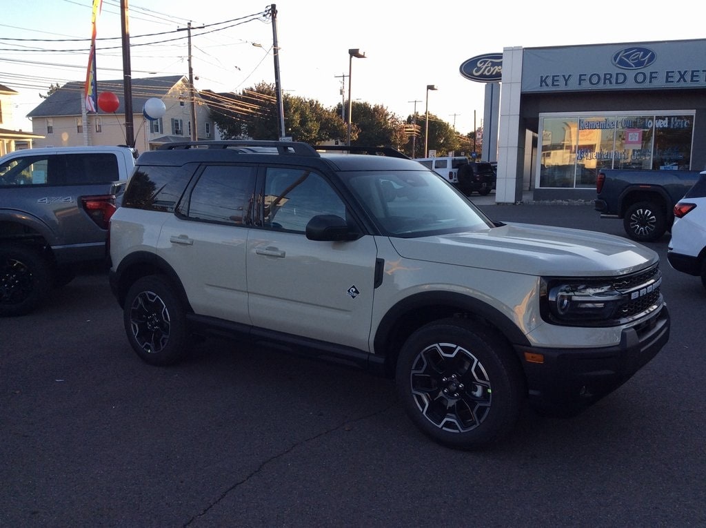 Recent Arrival! 2025 Ford Bronco Sport Outer Banks Call Key Ford of Exeter at 272-260-3194 to schedule a test drive today! This Bronco Sport Outer Banks is nicely equipped with Equipment Group 300A, 4-Wheel Disc Brakes, 6 Speakers, ABS brakes, Air Conditioning, Alloy wheels, AM/FM radio: SiriusXM, AM/FM Stereo, Auto High-beam Headlights, Auto-dimming Rear-View mirror, Automatic temperature control, Brake assist, Compass, Delay-off headlights, Driver door bin, Driver vanity mirror, Dual front impact airbags, Dual front side impact airbags, Electronic Stability Control, Emergency communication system: SYNC 4 911 Assist, Four wheel independent suspension, Front anti-roll bar, Front Bucket Seats, Front Center Armrest, Front Driver/Passenger Seat Back Map Pockets, Front dual zone A/C, Front fog lights, Front reading lights, Fully automatic headlights, Garage door transmitter, Heated door mirrors, Heated front seats, Heated steering wheel, Illuminated entry, Knee airbag, Low tire pressure warning, Memory seat, Occupant sensing airbag, Outside temperature display, Overhead airbag, Overhead console, Panic alarm, Passenger door bin, Passenger vanity mirror, Power door mirrors, Power driver seat, Power passenger seat, Power steering, Power windows, Premium Trimmed Front Bucket Seats w/Ebony/Roast, Premium Trimmed Front Bucket Seats w/Platinum Blue, Radio data system, Rain sensing wipers, Rear anti-roll bar, Rear Parking Sensors, Rear reading lights, Rear seat center armrest, Rear window defroster, Rear window wiper, Remote keyless entry, Security system, SiriusXM, Speed control, Speed-sensing steering, Speed-Sensitive Wipers, Split folding rear seat, Steering wheel mounted audio controls, SYNC 4 w/Enhanced Voice Recognition, Tachometer, Telescoping steering wheel, Tilt steering wheel, Traction control, Trip computer, Variably intermittent wipers, and Wheels: 18" Ebony Black-Painted Aluminum.