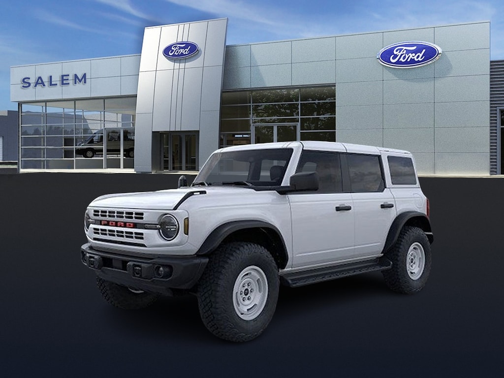 "2026 Ford Bronco Heritage Edition Oxford White ***PLEASE CALL 603-898-9766***.*****At Salem Ford you win!***** ****PLEASE CALL 603-898-9766****We make the car buying process very simple by displaying the lowest price on the window. We price our vehicles more aggressively than anyone else in the area. For that reason we're proud to display it on every vehicle's window.We believe there is more to buying a vehicle than worrying about the price. For that reason Key Auto has simplified that process for our customers. When we price a vehicle we take the following into consideration: 1) market conditions 2) what the area dealers are selling them for 3) Kelly Blue Book* retail. This way when you leave a Key Auto Dealership you're confident you've received the absolute best deal.Salem Ford is proud to present you with another True Market Priced Vehicle. This 2026 Ford Bronco Heritage Edition is loaded with the following Factory Options: Equipment Group 662A Mid Package (AM/FM Stereo Connected Navigation Plaid Cloth Front Heated Bucket Seats SiriusXM with 360L SYNC 4 and Wheels: 17""Unique White) Ford Connectivity Package (1-Year Included) 4-Wheel Disc Brakes 7 Speakers ABS brakes Air Conditioning Alloy wheels AM/FM radio: SiriusXM with 360L Auto High-beam Headlights Auto-dimming Rear-View mirror Automatic temperature control Brake assist Compass Convertible HardTop Convertible roof lining Delay-off headlights Driver door bin Driver vanity mirror Dual front impact airbags Dual front side impact airbags Electronic Stability Control Emergency communication system: 911 Assist Exterior Parking Camera Rear Front anti-roll bar Front Bucket Seats Front Center Armrest Front dual zone A/C Front fog lights Front License Plate Bracket Front reading lights Front Row Top Panels and Door Storage Bags Front wheel independent suspension Fully automatic headlights Glass rear window Heated door mirrors Heated leather seats Heated steering wheel Illuminated entry Integrated roll-over protection Low tire pressure warning Navigation system: Connected Navigation Occupant sensing airbag Outside temperature display Overhead airbag Overhead console Panic alarm Passenger door bin Passenger vanity mirror Power door mirrors Power steering Power windows Radio data system Rear window defroster Rear window wiper Remote keyless entry Security system Speed control Split folding rear seat Steering wheel mounted audio controls Tachometer Telescoping steering wheel Tilt steering wheel Traction control Trip computer Upgraded Carpet Front and Rear Floor Mats and Variably intermittent wipers!! Price includes conditional rebates. $750 - Retail Customer Cash. Exp. 04/30/2026"
