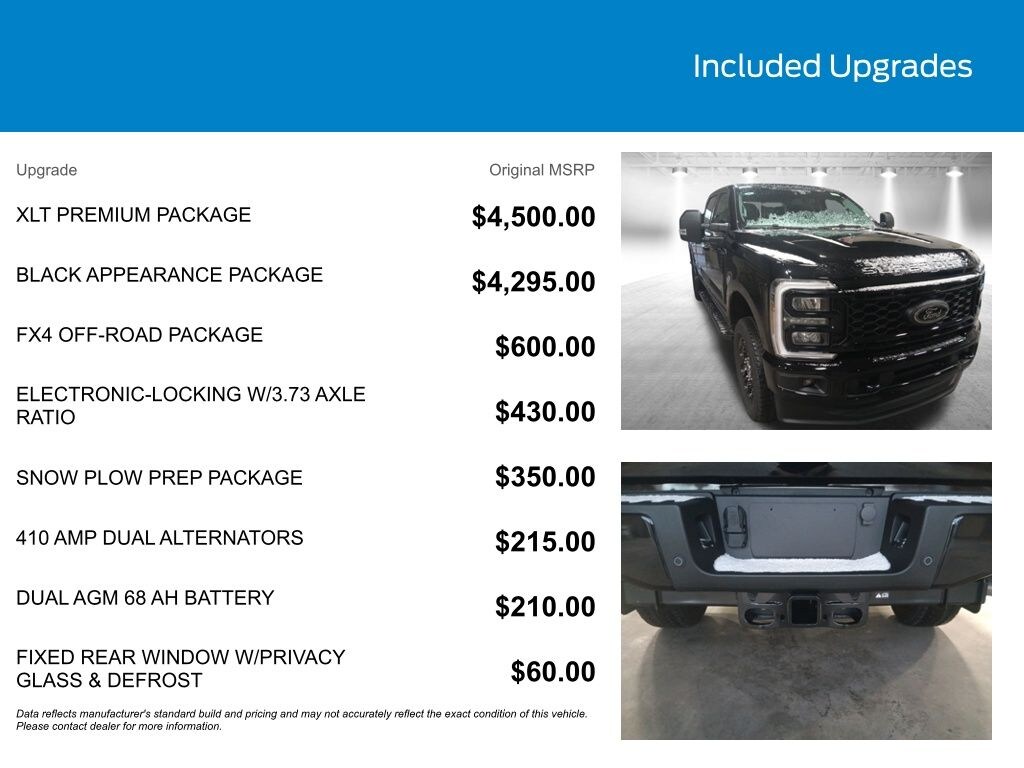 KEY FORD OF EXETER is proud to present you with another True Market Priced Vehicle. This 2026 Ford F-250SD XLT is loaded with the following Factory Options: 4WD Black Appearance Package (6" Ebony Black Angular Running Boards, Black Painted Front Grille Surround, and Body Color Front and Rear Bumpers), Ford Connectivity Package (1-Year Included), FX4 Off-Road Package (Hill Descent Control, Off-Road Specifically Tuned Shock Absorbers, and Unique FX4 Off-Road Box Decal), GVWR: 10,000 Lb Payload Package, Internet access capable: 5G Modem - Ford Connectivity Package, Order Code 603A (Cloth 40/20/40 Split Bench Seat, Radio: AM/FM Stereo with MP3 Player, SYNC 4, and Wheels: 18" Sparkle Silver Painted Cast Aluminum), Snow Plow Prep Package, XLT Premium Package (Body-Color Door Handles, Bright Chrome Grille with Chrome Inserts, Electrochromic Self-Dimming Rear-View Mirror, Intelligent Access with Push-Button Start, and Remote Tailgate Release), 4WD, 4-Wheel Disc Brakes, 410 Amp Dual Alternators, 6 Speakers, ABS brakes, Air Conditioning, Alloy wheels, AM/FM radio, Auto High-beam Headlights, Brake assist, Bumpers: chrome, Compass, Delay-off headlights, Driver door bin, Driver vanity mirror, Dual AGM 68 AH Battery, Dual front impact airbags, Dual front side impact airbags, Electronic Stability Control, Emergency communication system: SYNC 4 911 Assist, Exterior Parking Camera Rear, Fixed Rear Window with Privacy Glass and Defrost, Front anti-roll bar, Front Center Armrest w/Storage, Front fog lights, Front reading lights, Fully automatic headlights, Heated door mirrors, Illuminated entry, Low tire pressure warning, Outside temperature display, Overhead airbag, Overhead console, Panic alarm, Passenger door bin, Passenger vanity mirror, Power door mirrors, Power driver seat, Power steering, Power windows, Privacy Glass, Rear reading lights, Rear step bumper, Remote keyless entry, Security system, Speed control, Split folding rear seat, Steering wheel mounted audio controls, Tachometer, Telescoping steering wheel, Tilt steering wheel, Traction control, Trip computer, Turn signal indicator mirrors, and Variably intermittent wipers!! Price includes: $1000 - Retail Customer Cash. Exp. 03/31/2026