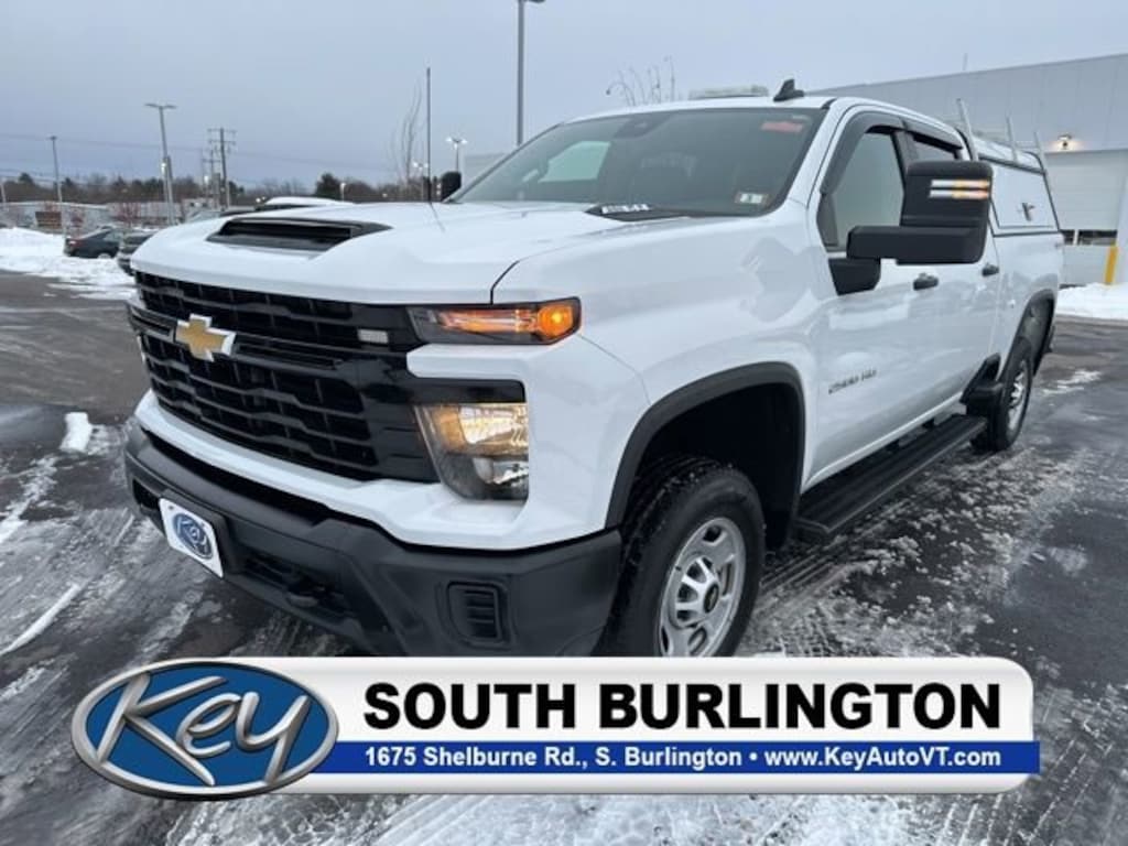 10-Speed Automatic, 4WD, Jet Black Vinyl. CARFAX One-Owner. 2024 Chevrolet Silverado 2500HD Work Truck Summit White Work Truck 4WD 10-Speed Automatic 6.6L V8The Best Service, The Best Selection, The Best Price...The Difference is Key!Internet advertised price includes a $500 Trade-in and $500 dealer financing incentive. Customer must trade in a vehicle to qualify for $500 trade-in incentive. Customer must use dealer supplied financing to qualify for $500 finance incentive.Key Chevrolet Burlington is proud to present you with another True Market Priced Pre-Owned Vehicle. Transparent Pricing Of $ 45999 !! This 2024 Chevrolet Silverado 2500HD Work Truck is loaded with the following Factory Options: 10-Speed Automatic, 4WD, and Jet Black Vinyl Preferred Equipment Group 1WT (170 Amp Alternator, 2-Speed Electronic Shift Transfer Case, 3.5 Diagonal Monochromatic Display DIC, Black Front Bumper, Black Mirror Caps, Black Rear Bumper, Bluetooth® For Phone, Chevrolet Connected Access Capable, Compass, HD Rear Vision Camera, High-Visibility Vertical Trailering Mirrors, Locking Tailgate, Manual Tailgate Function w/No EZ Lift, Manual Tilt-Wheel Steering Column, OnStar & Chevrolet Connected Services Capable, Power Door Locks, Power Front Windows w/Driver Express Up/Down, Power Rear Windows w/Express Down, Push Button Start, Rear 60/40 Folding Bench Seat (Folds Up), Remote Keyless Entry, Rubberized-Vinyl Floor Covering, Solar Absorbing Tinted Glass, Standard Tailgate, Wi-Fi Hotspot Capable, and Wireless Phone Projection), Suspension Package, WT Convenience Package (Deep-Tinted Glass, Electric Rear-Window Defogger, Electronic Cruise Control w/Set & Resume Speed, EZ Lift Power Lock & Release Tailgate, and Heated Vertical Trailering Mirrors), 10-Speed Automatic, 4WD, Jet Black Vinyl, 3.73 Rear Axle Ratio, 4-Wheel Disc Brakes, 6 Speakers, 6-Speaker Audio System, 720 Cold-Cranking Amps Heavy-Duty Battery, ABS brakes, Air Conditioning, All-Weather Floor Liners (LPO), AM/FM radio, Apple CarPlay/Android Auto, Auto High-beam Headlights, Brake assist, Color-Keyed Carpeting Floor Covering, Delay-off headlights, Deleted 3 Years of Remote Access, Driver door bin, Dual front impact airbags, Dual front side impact airbags, Durabed Pickup Bed, Electronic Stability Control, Front 40/20/40 Split-Bench Seats w/Lockable Storage, Front anti-roll bar, Front Center Armrest w/Storage, Front License Plate Kit, Front reading lights, Front Rubberized Vinyl Floor Mats, Front wheel independent suspension, Fully automatic headlights, Illuminated entry, Integrated Trailer Brake Controller, Low tire pressure warning, Occupant sensing airbag, Outside temperature display, Overhead airbag, Overhead console, Panic alarm, Passenger door bin, Passenger vanity mirror, Power steering, Power windows, Premium audio system: Chevrolet Infotainment 3, Radio: Chevrolet Infotainment 3 System, Rear reading lights, Rear Rubberized Vinyl Floor Mats, Rear step bumper, Remote keyless entry, Split folding rear seat, Tachometer, Tilt steering wheel, Traction control, Trip computer, Variably intermittent wipers, Vinyl Seat Trim, Voltmeter, and Wheels: 17 Silver Painted Steel!!