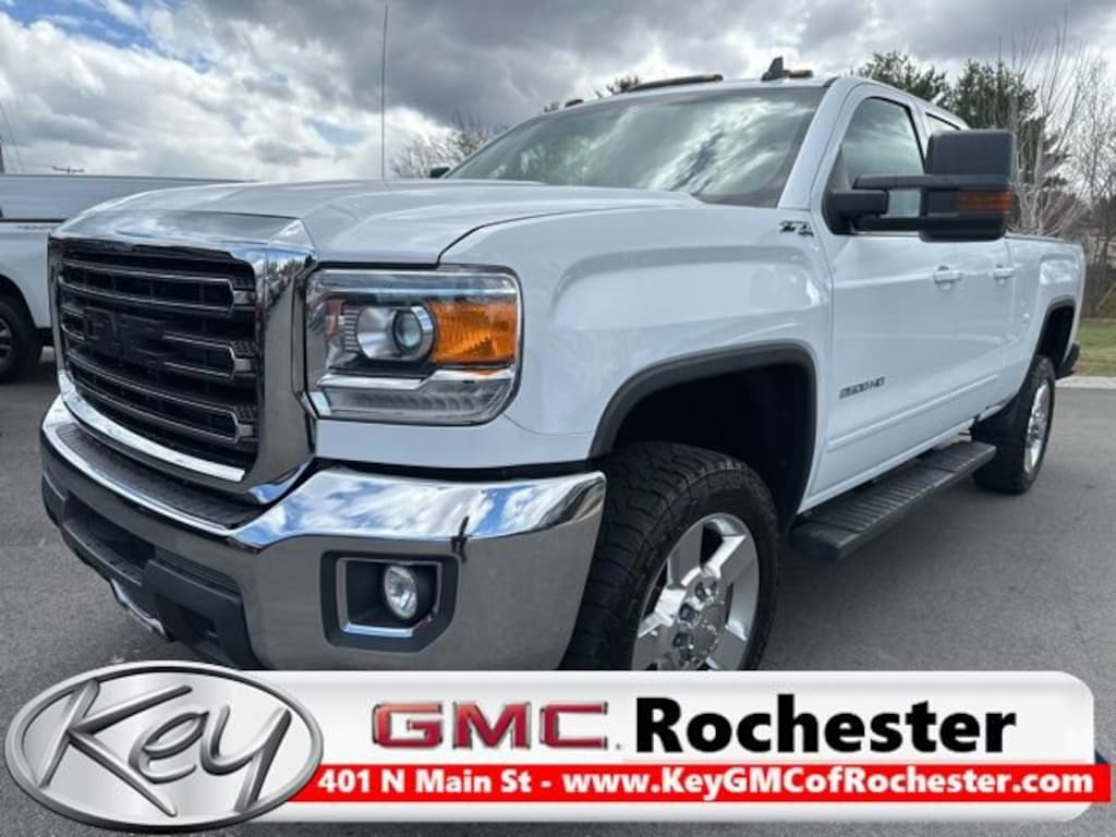 Key GMC Of Rochester is proud to present you with another True Market Priced Pre-Owned Vehicle. This 2019 GMC Sierra 2500HD SLE is loaded with the following Factory Options: 6-Speed Automatic HD Electronic with Overdrive, 4WD, and Black Cloth HD SLE Gas Preferred Plus Package (10-Way Power Driver's Seat Adjuster, 110-Volt AC Power Outlet, All-Weather Floor Liner (LPO), Dual-Zone Automatic Climate Control, Electric Rear-Window Defogger, Front Halogen Fog Lamps, Manual Tilt-Wheel/Telescoping Steering Column, Remote Vehicle Starter System, Spray-On Pickup Box Bed Liner, and Theft Deterrent System (Unauthorized Entry)), Heavy-Duty Handling/Trailering Suspension Package, Off-Road Suspension Package (Hill Descent Control), OnStar & GMC Connected Services Capable (GMC 4G LTE and GMC Connected Access), Preferred Equipment Group 3SA (4.2 Diagonal Color Display Driver Info Center, Body Color Bodyside Moldings, Body-Color Door Handles, Color-Keyed Carpeting Floor Covering, Deep-Tinted Glass, Driver & Front Passenger Vanity Mirror Visors, Electronic Shift Transfer Case, Leather-Wrapped Steering Wheel, LED Cargo Box Lighting, Rear 60/40 Folding Bench Seat (Folds Up), Rear Wheelhouse Liners, Remote Keyless Entry, Remote Locking Tailgate, Rubberized-Vinyl Front Floor Mats, Rubberized-Vinyl Rear Floor Mats, and Steering Wheel Audio Controls), SLE Convenience Package (Power-Adjustable Pedals For Accelerator & Brake and Ultrasonic Rear Park Assist), Snow Plow Prep Package (220 Amps Alternator, Heavy Duty Front Springs, and Provision for Cab Roof-Mounted Lamp/Beacon), Trailering Equipment (Trailer Brake Controller), 6-Speed Automatic HD Electronic with Overdrive, 4WD, Black Cloth, 17 Machined Aluminum Wheels, 4-Wheel Disc Brakes, 4.10 Rear Axle Ratio, 6 Speakers, ABS brakes, Air Conditioning, Alloy wheels, AM/FM radio: SiriusXM, Auto-dimming door mirrors, Auto-dimming Rear-View mirror, Bluetooth® For Phone, Bodyside moldings, Brake assist, Bumpers: chrome, CD player, Cloth Seat Trim, Compass, Delay-off headlights, Driver door bin, Driver vanity mirror, Dual front impact airbags, Dual front side impact airbags, Electronic Stability Control, Exterior Parking Camera Rear, Front 40/20/40 Reclining Split-Bench Seat, Front anti-roll bar, Front Center Armrest w/Storage, Front License Plate Kit, Front reading lights, Front wheel independent suspension, Fully automatic headlights, HD Radio, Heated door mirrors, Heated Driver and Front Passenger Seats, High-Intensity Discharge Headlights, Illuminated entry, Low tire pressure warning, Occupant sensing airbag, Outside temperature display, Overhead airbag, Overhead console, Panic alarm, Passenger door bin, Passenger vanity mirror, Power door mirrors, Power steering, Power windows, Premium audio system: GMC Infotainment System, Radio: AM/FM/SiriusXM/HD, Rear reading lights, Rear step bumper, Remote keyless entry, Single Slot CD/MP3 Player, SiriusXM Radio, Smoked Amber Roof Marker