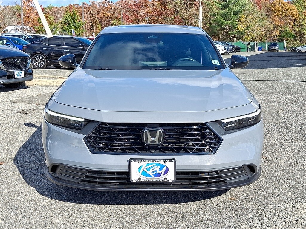 KEY ACURA OF ATLANTIC CITY is proud to present you with another True Market Priced Pre-Owned Vehicle. Transparent Pricing Of $ 25659 !! This 2023 Honda Accord Hybrid Sport is loaded with the following Factory Options: 2.0L 16V DOHC 2.0L 16V DOHC, 4-Wheel Disc Brakes, 8 Speakers, ABS brakes, Adaptive Cruise Control: Adaptive Cruise Control (ACC) with Low-Speed Follow, Air Conditioning, Alloy wheels, AM/FM radio, Apple CarPlay/Android Auto, Auto High-beam Headlights, Automatic temperature control, Brake assist, Bumpers: body-color, Compass, Delay-off headlights, Driver door bin, Driver vanity mirror, Dual front impact airbags, Dual front side impact airbags, Electronic Stability Control, Emergency communication system: HondaLink, Exterior Parking Camera Rear, Fabric Seat Trim, Four wheel independent suspension, Front anti-roll bar, Front Bucket Seats, Front Center Armrest, Front dual zone A/C, Front reading lights, Fully automatic headlights, Illuminated entry, Knee airbag, Lane departure: Lane Keeping Assist System (LKAS) active, Leather Shift Knob, Leather steering wheel, Low tire pressure warning, Occupant sensing airbag, Outside temperature display, Overhead airbag, Overhead console, Panic alarm, Passenger door bin, Passenger vanity mirror, Power door mirrors, Power driver seat, Power moonroof, Power steering, Power windows, Radio data system, Radio: 180-Watt Audio System, Rear anti-roll bar, Rear reading lights, Rear seat center armrest, Rear side impact airbag, Rear window defroster, Remote keyless entry, Security system, Speed control, Speed-sensing steering, Speed-Sensitive Wipers, Split folding rear seat, Spoiler, Steering wheel mounted audio controls, Telescoping steering wheel, Tilt steering wheel, Traction control, Trip computer, Variably intermittent wipers, and Wheels: 19" x 8.5J Berlina Black!!