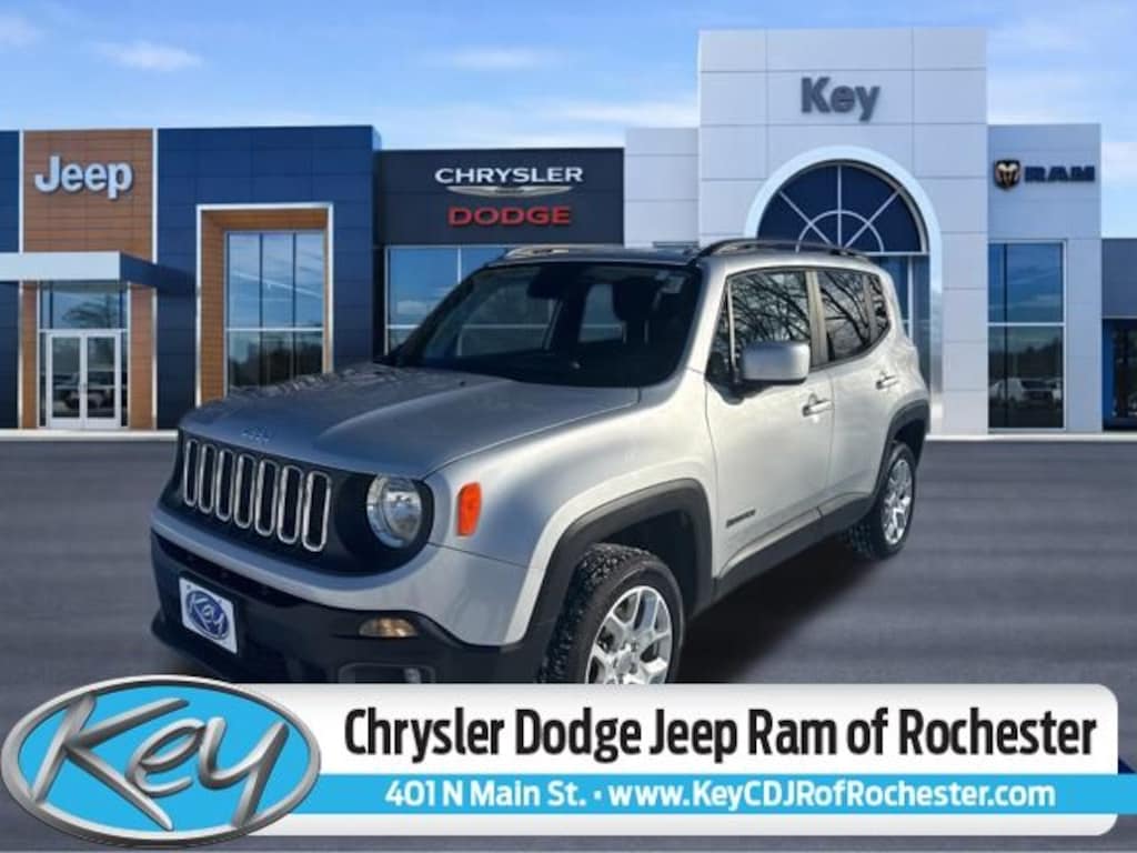 Key Chrysler Dodge Jeep Ram of Rochester is proud to present you with another True Market Priced Pre-Owned Vehicle. Transparent Pricing Of $ 11499 !! This 2018 Jeep Renegade Latitude is loaded with the following Factory Options: Cold Weather Group (All-Season Floor Mats, Heated Front Seats, Heated Steering Wheel, PTC Auxiliary Interior Heater, and Windshield Wiper De-Icer), Passive Entry Remote Start Package (Passive Entry/Keyless Go), Popular Equipment Group (115V Auxiliary Power Outlet, 40/20/40 Rear Seat w/Trunk Pass-Thru, Auto-Dimming Rear-View Mirror, Power 4-Way Driver Lumbar Adjust, and Power 8-Way Driver Manual 4-Way Passenger Seats), Quick Order Package 2EJ (17" x 7.0" Aluminum Wheels), Uconnect 8.4 Nav Group (1-Year SiriusXM Guardian Trial, 5-Year SiriusXM Travel Link Service, 8.4" Touchscreen Display, Cluster 7" TFT Color Display, For Details Visit DriveUconnect.com, GPS Navigation, HD Radio, Radio: Uconnect 4C Nav w/8.4" Display, SiriusXM Traffic Plus, and SiriusXM Travel Link), 16" x 6.5" Aluminum Wheels, 4-Wheel Disc Brakes, 6 Speakers, ABS brakes, Air Conditioning, Alloy wheels, AM/FM radio: SiriusXM, Anti-whiplash front head restraints, Apple CarPlay/Android Auto, Automatic temperature control, Brake assist, Compass, Delay-off headlights, Driver door bin, Driver vanity mirror, Dual front impact airbags, Dual front side impact airbags, Electronic Stability Control, Four wheel independent suspension, Front anti-roll bar, Front Bucket Seats, Front Center Armrest, Front dual zone A/C, Front fog lights, Front reading lights, Fully automatic headlights, Heated door mirrors, Illuminated entry, Knee airbag, Leather steering wheel, Low tire pressure warning, Manufacturer's Statement of Origin, Normal Duty Suspension, Occupant sensing airbag, Outside temperature display, Overhead airbag, Overhead console, Panic alarm, ParkView Rear Back-Up Camera, Passenger door bin, Passenger vanity mirror, Power door mirrors, Power steering, Power windows, Premium Cloth Bucket Seats, Radio data system, Radio: Uconnect 4 w/7" Display, Rear anti-roll bar, Rear window defroster, Rear window wiper, Remote keyless entry, Roof rack: rails only, Speed control, Split folding rear seat, Spoiler, Steering wheel mounted audio controls, Tachometer, Telescoping steering wheel, Tilt steering wheel, Traction control, Trip computer, Variably intermittent wipers, and Voltmeter!!