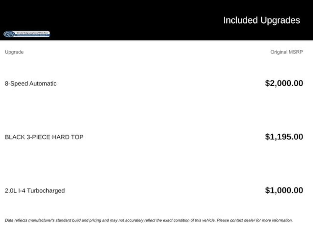 Key Chrysler Dodge Jeep Ram of White River is proud to present you with another True Market Priced Pre-Owned Vehicle. Transparent Pricing Of $ !! This 2019 Jeep Wrangler Unlimited Sahara is loaded with the following Factory Options: Quick Order Package 28G, 3.45 Rear Axle Ratio, 4-Wheel Disc Brakes, 8 Speakers, ABS brakes, Air Conditioning, Alloy wheels, AM/FM radio: SiriusXM, Apple CarPlay/Android Auto, Automatic temperature control, Black 3-Piece Hard Top, Brake assist, Cloth Low-Back Bucket Seats, Compass, Delay-off headlights, Driver door bin, Driver vanity mirror, Dual front impact airbags, Dual front side impact airbags, Electronic Stability Control, Freedom Panel Storage Bag, Front anti-roll bar, Front Bucket Seats, Front Center Armrest w/Storage, Front dual zone A/C, Front fog lights, Front reading lights, Fully automatic headlights, Garage door transmitter, Heated door mirrors, Heavy Duty Suspension w/Gas Shocks, Illuminated entry, Integrated roll-over protection, Leather steering wheel, Low tire pressure warning, Manufacturer's Statement of Origin (DISC), No Soft Top, Non-Lock Fuel Cap w/o Discriminator, Occupant sensing airbag, Outside temperature display, Panic alarm, ParkView Rear Back-Up Camera, Passenger door bin, Passenger vanity mirror, Power door mirrors, Power steering, Power windows, Radio data system, Radio: Uconnect 4 w/7" Display, Rear anti-roll bar, Rear reading lights, Rear Window Defroster, Rear Window Wiper/Washer, Remote keyless entry, Security system, Speed control, Split folding rear seat, Steering wheel mounted audio controls, Tachometer, Telescoping steering wheel, Tilt steering wheel, Traction control, Trip computer, Variably intermittent wipers, Voltmeter, and Wheels: 18" x 7.5" Polished w/Gray Spokes!!