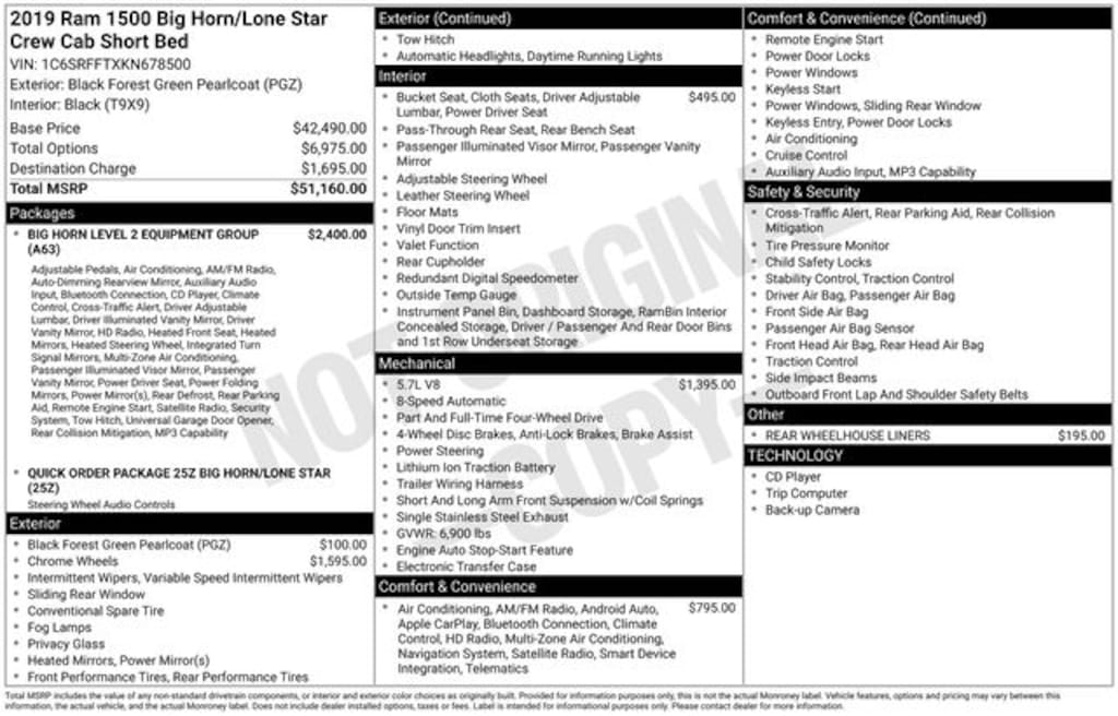 So I optioned first a 2019 Ram Bighorn,8.5 inch nav loaded screen,Level II package,4x4,3:92 axle ELocker,6ft bed.Got pricing from 5 Ram dealerships.Went to 3 Ford dealership’s and all of them never beat the price of the Ram 1500.And these were either ordered or on lots F-150 XLT trim with upgraded to 5.0L V-8 I did not want the V-6 TT turbo engine option to much money with 10 speed.Chevy’s trucks interior was even close in terms of comfort and center-stack just look old schooled.Both the Ford and the Chevy were more money or with in 900.0 dallors of the Ram 1500 but the styling and interior was just way better than the Ford F-150,and the Silverado...GM was not discounting hardly at all so the dealers were bring the price down on there side..Ford F-150’s interior was well just cheap looking with the small screen and hardly had no center storage because the shifter was there,not like the Ram 1500 had. The Ram 1500 center console is just way better design by a mile...Test drove all 3 and the Ram with the coil spring rode the best hands down and was far quieter inside while driving in city traffic during rush hour..My previous truck was a 2014 Ford F-150.I was a brand loyal kinda guy but after all the trips to these dealerships it became evident the Ram 1500 was the easy choice with my hard earn dallor..…