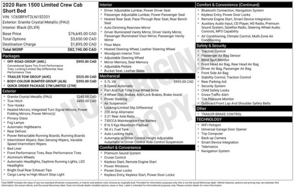 Key Chrysler Dodge Jeep Ram Newcastle is proud to present you with another True Market Priced Pre-Owned Vehicle. Transparent Pricing Of $ !! This 2020 Ram 1500 Limited is loaded with the following Factory Options: Body Color Bumper Group (Body Color Front Bumper and Body Color Rear Bumper w/Step Pads), Off Road Group (E-Locker Rear Axle, Front Extra HD Shock Absorbers, Hill Descent Control, Off Road Decals, and Rear Extra HD Shock Absorbers), Quick Order Package 27M Limited, Trailer Tow Group (Trailer Brake Control), 10 Speakers, 3.21 Rear Axle Ratio, 4-Wheel Disc Brakes, 48V Belt Starter Generator, ABS brakes, Adjustable pedals, Air Conditioning, Alloy wheels, AM/FM radio: SiriusXM with 360L, Apple CarPlay/Android Auto, Audio memory, Auto High-beam Headlights, Auto-dimming door mirrors, Auto-dimming Rear-View mirror, Auto-leveling suspension, Automatic temperature control, Bodyside moldings, Brake assist, Bumpers: chrome, Compass, Delay-off headlights, Driver door bin, Driver vanity mirror, Dual front impact airbags, Dual front side impact airbags, Electronic Stability Control, Emergency communication system: SiriusXM Guardian, Front anti-roll bar, Front Bucket Seats, Front Center Armrest w/Storage, Front dual zone A/C, Front fog lights, Front reading lights, Front wheel independent suspension, Fully automatic headlights, Garage door transmitter, Genuine wood console insert, Genuine wood dashboard insert, Genuine wood door panel insert, Heated door mirrors, Heated Front seats, Heated rear seats, Heated steering wheel, Illuminated entry, Leather steering wheel, Low tire pressure warning, Memory seat, Navigation System, Occupant sensing airbag, Outside temperature display, Overhead airbag, Overhead console, Panic alarm, ParkView Rear Back-Up Camera, Passenger door bin, Passenger vanity mirror, Pedal memory, Power door mirrors, Power driver seat, Power passenger seat, Power steering, Power windows, Premium Leather Trimmed Bucket Seats, Radio data system, Radio: Uconnect 12 w/Navigation, Rain sensing wipers, Rear anti-roll bar, Rear seat center armrest, Rear step bumper, Rear window defroster, Remote keyless entry, Security system, Speed control, Split folding rear seat, Steering wheel mounted audio controls, Tachometer, Telescoping steering wheel, Tilt steering wheel, Traction control, Trip computer, Turn signal indicator mirrors, Variably intermittent wipers, Ventilated front seats, Voltmeter, and Wheels: 20" x 9" Polished w/Inserts!!