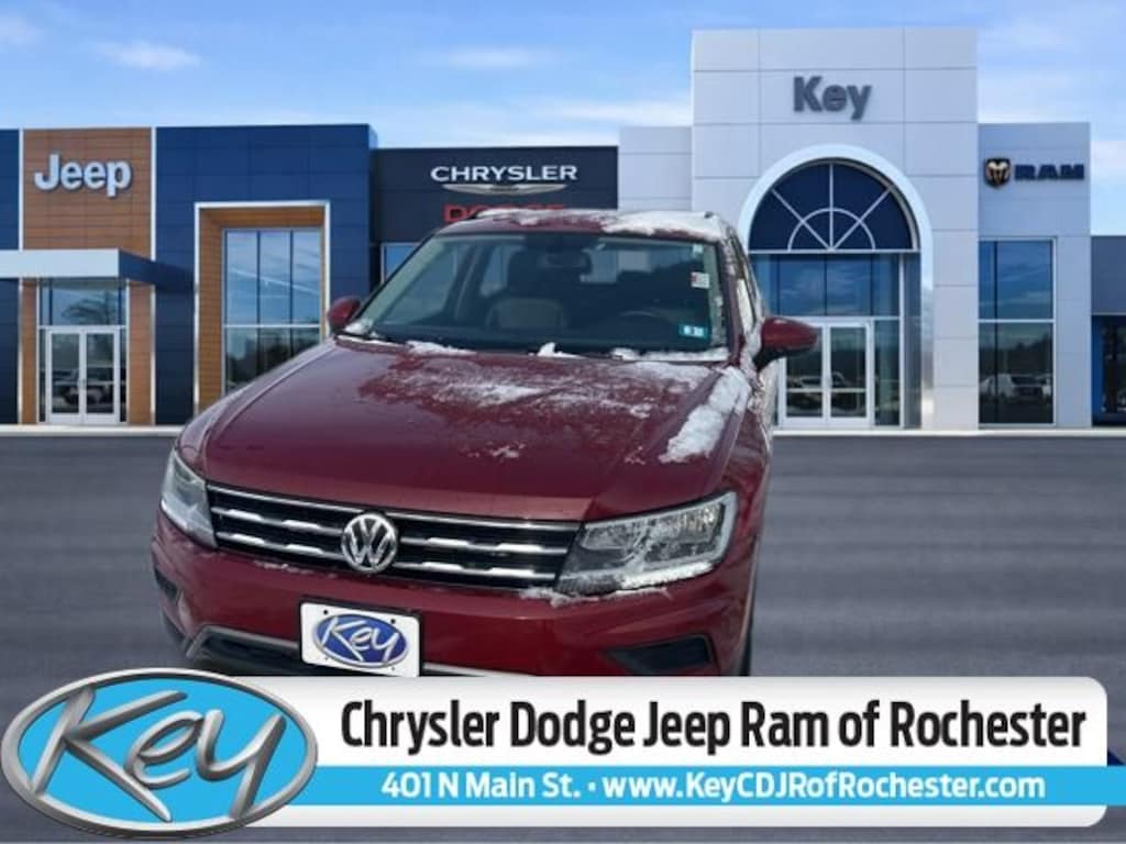 Key Chrysler Dodge Jeep Ram of Rochester is proud to present you with another True Market Priced Pre-Owned Vehicle. Transparent Pricing Of $ 17629 !! This 2021 Volkswagen Tiguan 2.0T SE is loaded with the following Factory Options: AWD AWD, 2-Row Rubber Monster Mats w/Logo Kit (Set of 4), 3.33 Axle Ratio, 4-Wheel Disc Brakes, 4-Wheel Independent Suspension, 6 Speakers, ABS brakes, Air Conditioning, Alloy wheels, AM/FM radio: SiriusXM with 360L, Automatic temperature control, Brake assist, Bumpers: body-color, Compass, Delay-off headlights, Driver door bin, Driver vanity mirror, Dual front impact airbags, Dual front side impact airbags, Electronic Stability Control, Emergency communication system: VW Car-Net services (capabilities require enrollment or subscription), Exterior Parking Camera Rear, First Aid Kit, Forward collision: FCW w/Autonomous Emergency Braking mitigation, Four wheel independent suspension, Front anti-roll bar, Front Bucket Seats, Front Center Armrest, Front dual zone A/C, Front reading lights, Fully automatic headlights, Heated door mirrors, Heated Front Comfort Seats, Heated front seats, Heavy Duty Trunk Liner w/VW CarGo Blocks, Illuminated entry, Leather Shift Knob, Low tire pressure warning, Occupant sensing airbag, Outside temperature display, Overhead airbag, Overhead console, Panic alarm, Passenger door bin, Passenger vanity mirror, Perforated V-Tex Leatherette Seating Surfaces, Power door mirrors, Power driver seat, Power steering, Power windows, Radio data system, Radio: MIB3 Composition Media AM/FM/HD, Rear anti-roll bar, Rear reading lights, Rear seat center armrest, Rear window defroster, Rear window wiper, Remote keyless entry, Roadside Assistance Kit, Roof rack: rails only, Security system, Speed control, Speed-sensing steering, Split folding rear seat, Spoiler, Steering wheel mounted audio controls, Tachometer, Telescoping steering wheel, Tilt steering wheel, Traction control, Trip computer, Turn signal indicator mirrors, Variably intermittent wipers, and Wheels: 17" 2-Tone Machined & Black Alloy!!